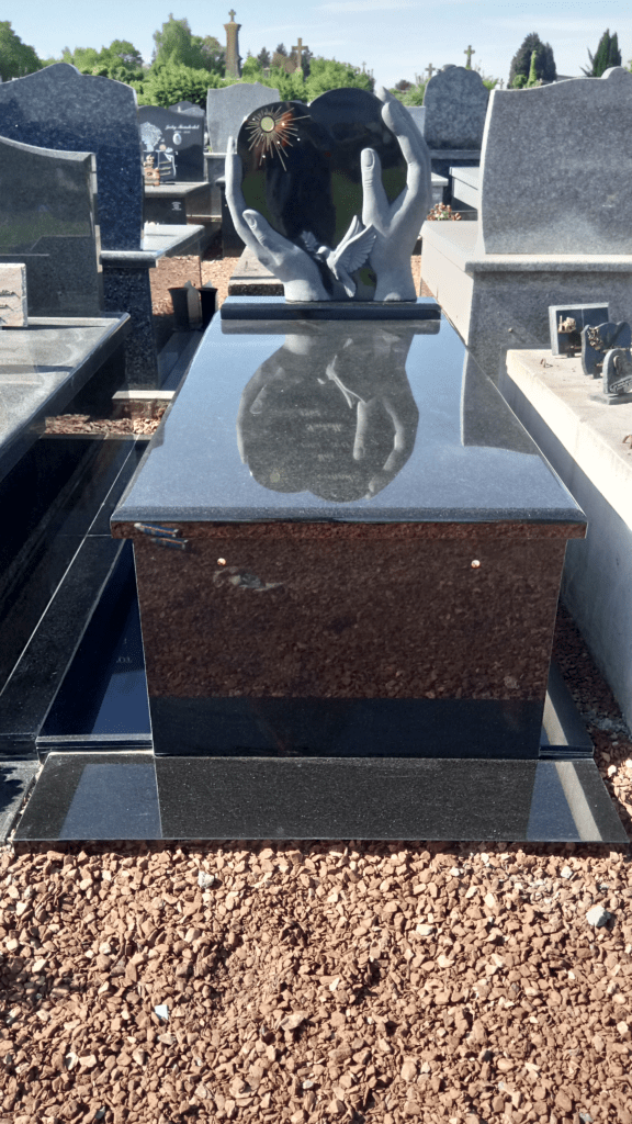 - – la pierre tombale : vous pouvez choisir parmi plusieurs matériaux, de la pierre (l’entretien est fastidieux), le marbre (le choix de couleur est limité) et le plus courant le granit qui permet d’avoir un large choix de couleurs;